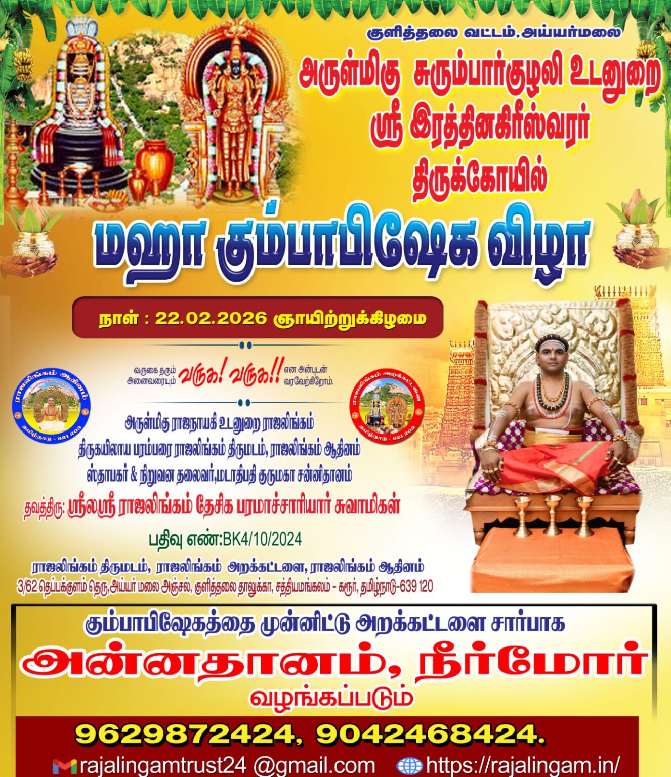 Founder & President, Reverend Tavathiru.Sri la sri Rajalingam